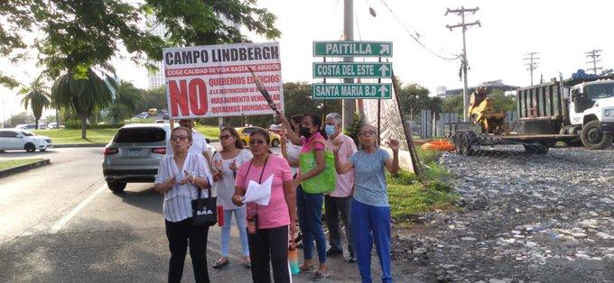 Panamá- Un grupo de residentes de la barriada Campo Lindbergh, ubicada en el corregimiento de Juan Díaz, protestaron esta mañana en rechazo a la construcción de proyecto habitacional que consiste en conjunto de edificios de apartamentos.