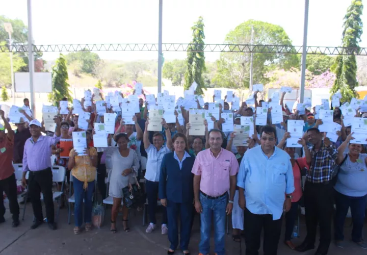 De esta entrega se benefician residentes de Los Castillos, Cabuya, Potuga, Parita, Ocú, Los Pozos y Chitré, quienes esperaron por años el documento legal que aumenta el valor  de su tierra y que les da oportunidad de vincularse a actividades productivas, agrícolas, pecuarias, incluso turísticas.