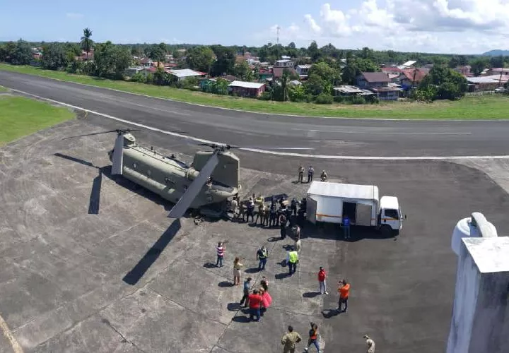Los restos humanos fueron trasladados vía aérea hasta la base del Servicio Nacional Aeronaval en el aeropuerto Enrique Malek, en David.