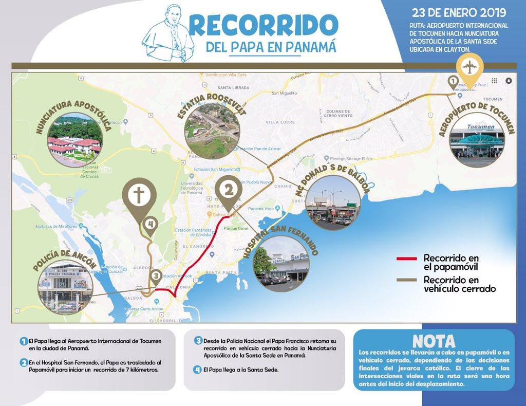 Revelan rutas de desplazamiento del Papa Francisco durante JMJ en Panamá