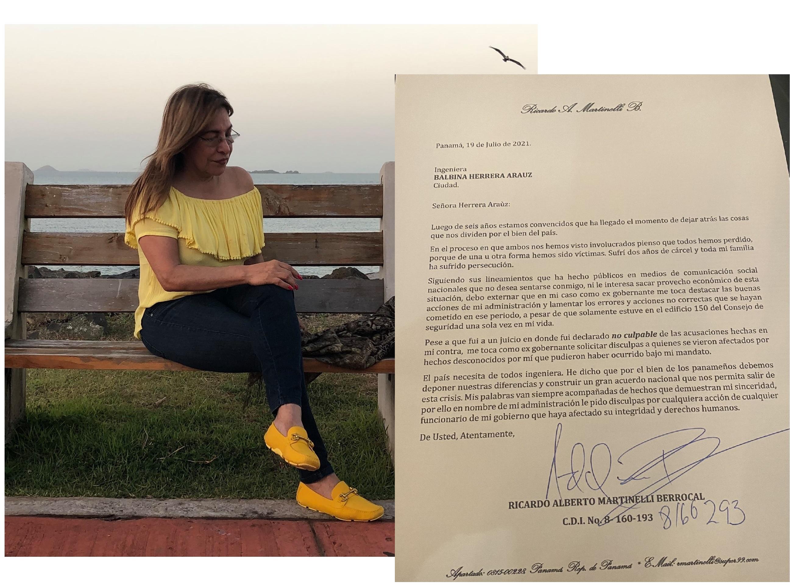 El exmandatario  Ricardo Martinelli Berrocal, quien ya fue declarado No Culpable en el juicio por el proceso "Pinchazos" y se ha visto forzado a enfrentar un doble juzgamiento por este caso, envió una carta donde pide disculpas a la excandidata presidencial Balbina Herrera y plantea dejar atrás -por el bien del país- cosas que nos dividen.