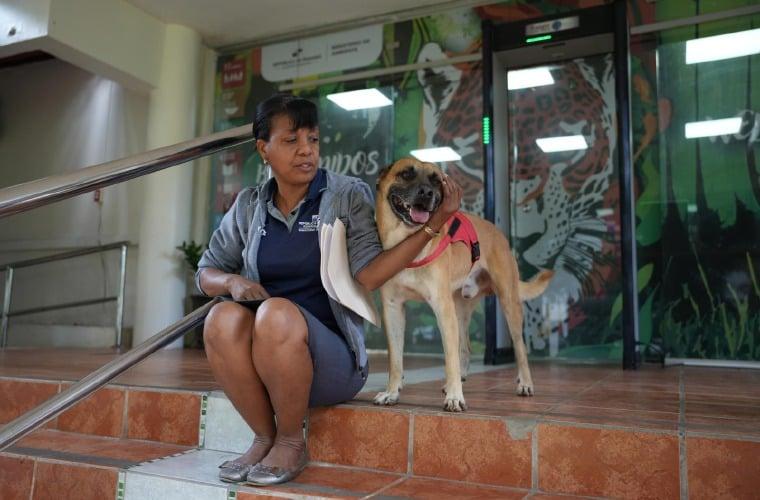 Yesenia Gittens Delgado, asistente administrativa de Transporte, y fiel cuidadora de Rocco destaca que este guardián no solo sigue sus pasos durante toda la jornada, sino que también se ha convertido en una pieza fundamental de la dinámica diaria que realiza por las instalaciones de MiAMBIENTE en la sede central.