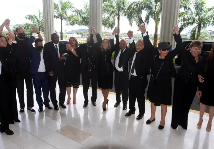 Los diputados llegaron vestidos de negro y la jefa de bancada y secretaria general del CD, Yanibel Abrego dijo que venían a impugnar la decisión ilegal del "ambicioso" Rómulo Roux, que lo "violado todo" por el miedo de enfrentarse en las urnas.