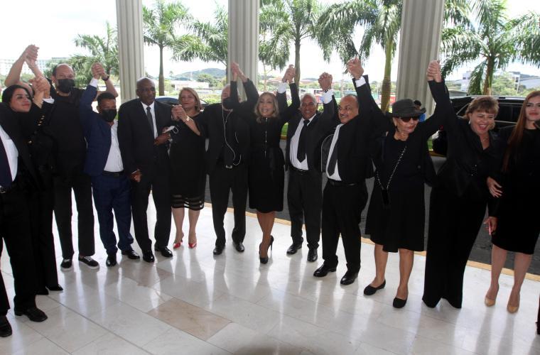 Los diputados llegaron vestidos de negro y la jefa de bancada y secretaria general del CD, Yanibel Abrego dijo que venían a impugnar la decisión ilegal del "ambicioso" Rómulo Roux, que lo "violado todo" por el miedo de enfrentarse en las urnas.