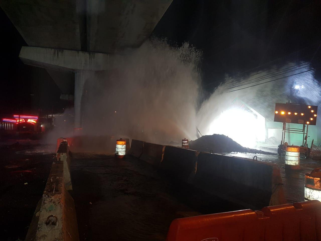 Personal del Instituto de Acueductos y Alcantarillados Nacional (Idaan) y de la empresa encargada de la ampliación de la vía Transístmica han procedido a cerrar el circuito de agua. Informan que deben esperar el desagüe de la línea de una a tres horas para luego proceder a la reparación.