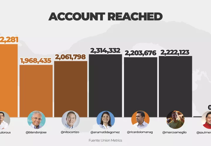 Las menciones que los usuarios hicieron de Roux (abanderado de la coalición Cambio Democrático-Alianza) tuvieron un impacto de 2 millones 652 mil 281 impresiones, seguido de Ana Matilde Gómez con 2 millones 314 mil 332 impresiones, Marco Ameglio con 2 millones 222 mil 123 impresiones, y Ricardo Lombana con 2 millones 203 mil 676 impresiones. Estos tres últimos candidatos son de libre postulación.