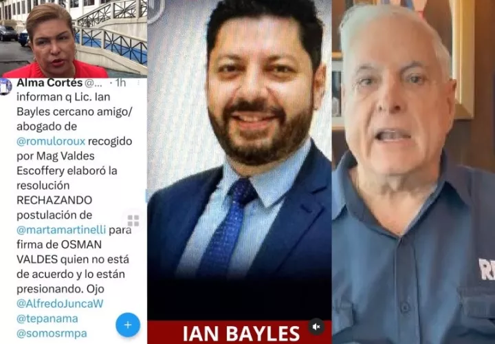 En su cuenta de Twitter, Cortés dijo que le informaron que “el licenciado Ian Bayless, cercano amigo-abogado de Rómulo Roux, recogido por el magistrado Vadés Escoffery, elaboró la resolución rechazando la postulación de Marta de Martinelli para firma de Osman Valdés quien no está de acuerdo y lo están presionando. Ojo”.