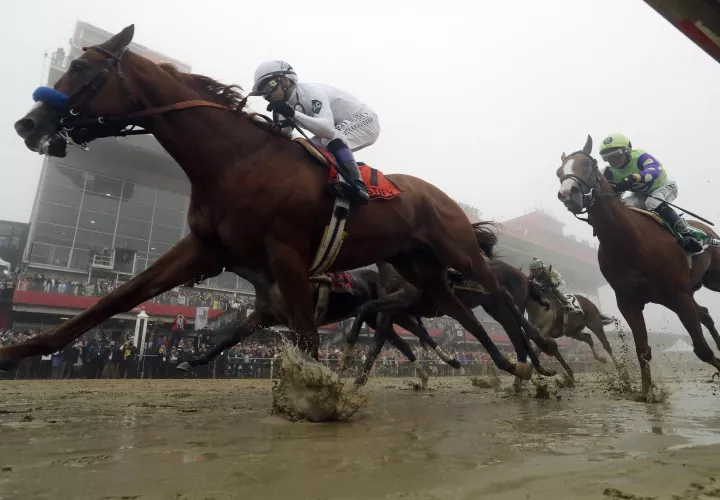 Justify, ganador del Kentucky Derby, se impuso con claridad en la edición número 143 del Preakness Stakes, que se corrió en pista lodosa y bajo una fuerte lluvia.