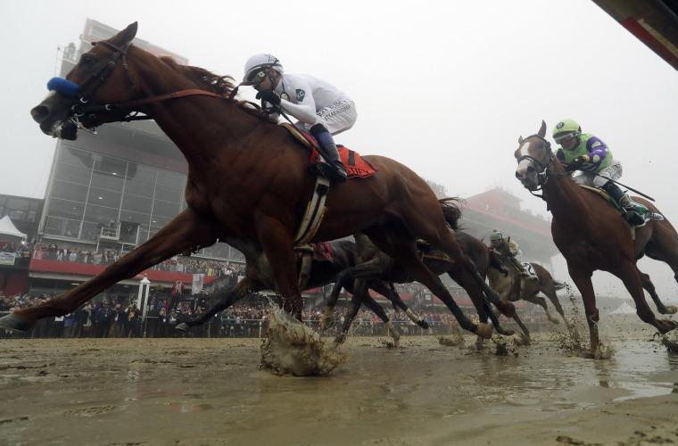 Justify, ganador del Kentucky Derby, se impuso con claridad en la edición número 143 del Preakness Stakes, que se corrió en pista lodosa y bajo una fuerte lluvia.