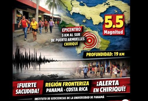 El movimiento telúrico tuvo una profundidad de 19 kilómetros y se localizó en la región fronteriza Panamá–Costa Rica, específicamente 5 kilómetros al sur de Puerto Armuelles, en la provincia de Chiriquí.