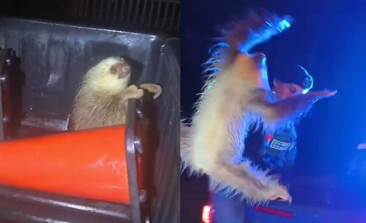 Unidades de la Policía Nacional rescatan en el portal de una residencia en Penonomé aun perezoso, aparentemente desorientado. El animal fue salvado por los oficiales y devuelto a su hábitat natural en un área boscosa de la provincia de Coclé.