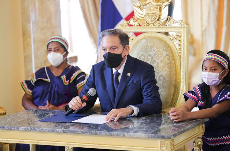 La firma de ambas leyes tuvo como testigos de honor a la niña Edelfa Elena Salazar Cruz y a su madre, Elena Cruz, residentes de Kankintú, en la comarca Ngäbe-Buglé.