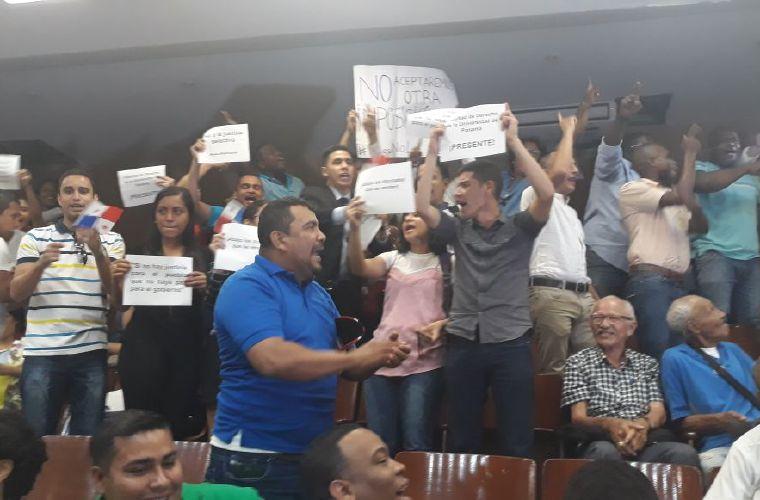 Ayer hubo una movilización de personas a las gradas del Palacio Justo Arosemena, donde los asistentes les gritaban de todo a los diputados oficialistas. Con pancartas en manos y coreando consignas: “Soy del pueblo” “Soy del pueblo” No es no” “No es no”, representantes de la sociedad civil se manifestaba en las graderías.