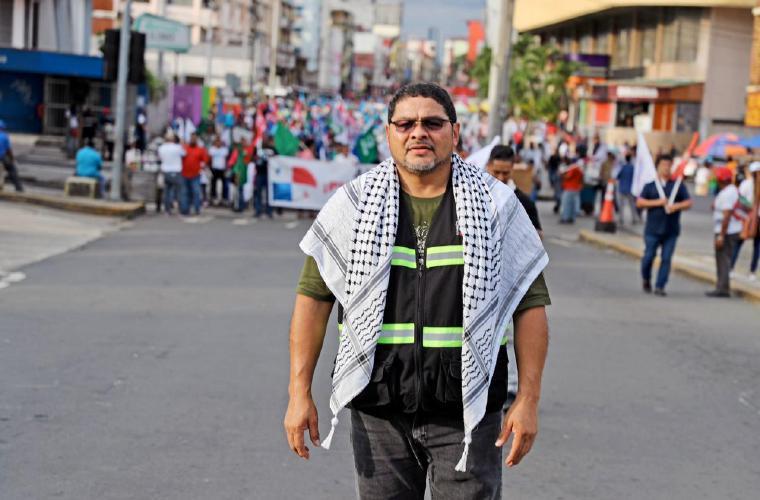 Organizaciones de la alianza Pueblo Unido marcharon ayer desde la plaza Porras hasta los predios de la Presidencia para reiterar su rechazo al contrato minero.