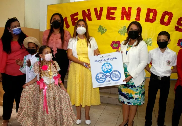 La ministra de Educación, Maruja Gorday de Villalobos, en gira de trabajo realizada en la escuela Pedro J. Sosa hizo entrega a la directora del plantel, Alba Barroso, el certificado de escuela segura, lo que indica que cuentan con las condiciones necesarias para iniciar gradual las clases de manera semipresencial, tal como es el sentir de la comunidad educativa.