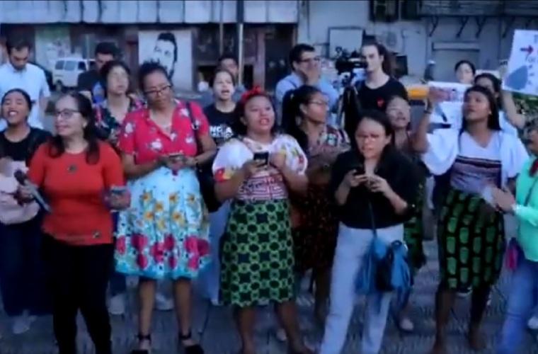 Mientas que en las afueras de la Asamblea Nacional, un grupo de mujeres latinas y gunas acompañadas de tamborito armaron una protesta musical contra el diputado Arias. "Tocan a unas, nos tocan a todas", "no es hora de callar", "nos quitaron tanto, que nos quitaron hasta el miedo", "Calladas nos quieren ver, los cómplices de Arquesio", "Arquesio te damos desacato, Panamá no quiere ver violador por diputados", eran parte de de las tonadas.