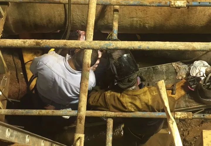 Unidad de Proyectos Especiales con apoyo de la Autoridad del Canal de Panamá (ACP) avanzan desde ayer en los trabajos de soldadura.