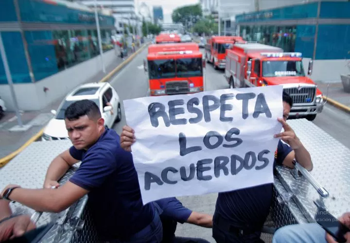 Los bomberos de Panamá y el interior están en paro en protesta por los pagos incumplidos de ascensos y recortes en el presupuesto. Ayer realizaron caravanas en la capital, Chiriquí, Veraguas, Azuero y Colón con sus camiones de extinción de incendios.