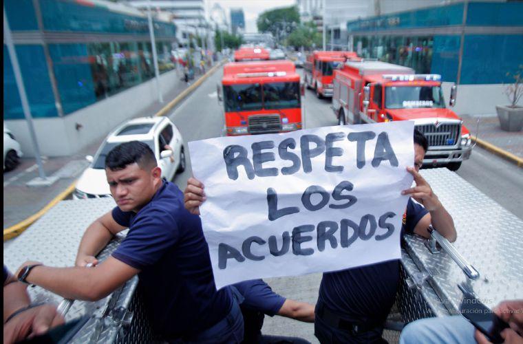 Los bomberos de Panamá y el interior están en paro en protesta por los pagos incumplidos de ascensos y recortes en el presupuesto. Ayer realizaron caravanas en la capital, Chiriquí, Veraguas, Azuero y Colón con sus camiones de extinción de incendios.