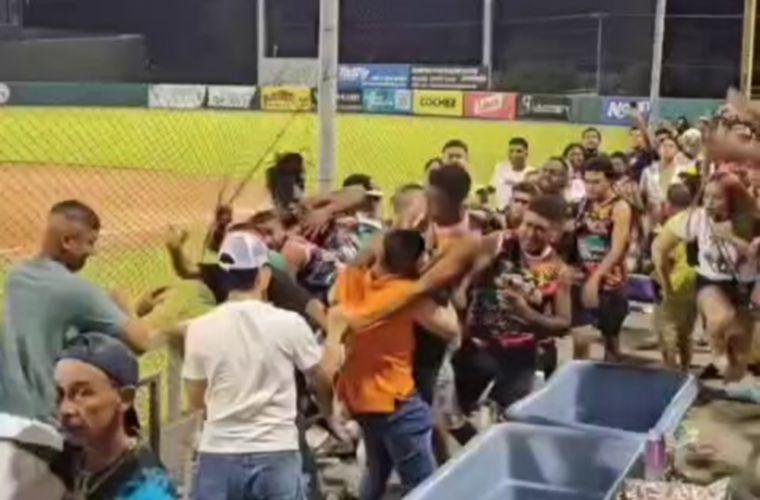 Jugadores de ambos equipos invadieron el terreno, intercambiando empujones y golpes, mientras que en las gradas también se desataron peleas entre aficionados. Algunos fanáticos incluso bajaron al campo y uno conocido como "Búfalo" fue golpeado por peloteros bocatoreños.