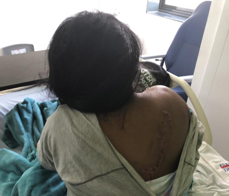 “Es odio. Para mí es un odio que había”, dijo Dina, quien tenía el labio superior hinchado, moretones en el tórax y abdomen y una herida que cicatrizaba en la espalda. Cuando fue rescatada ni siquiera podía hablar porque tenía la garganta inflamada.