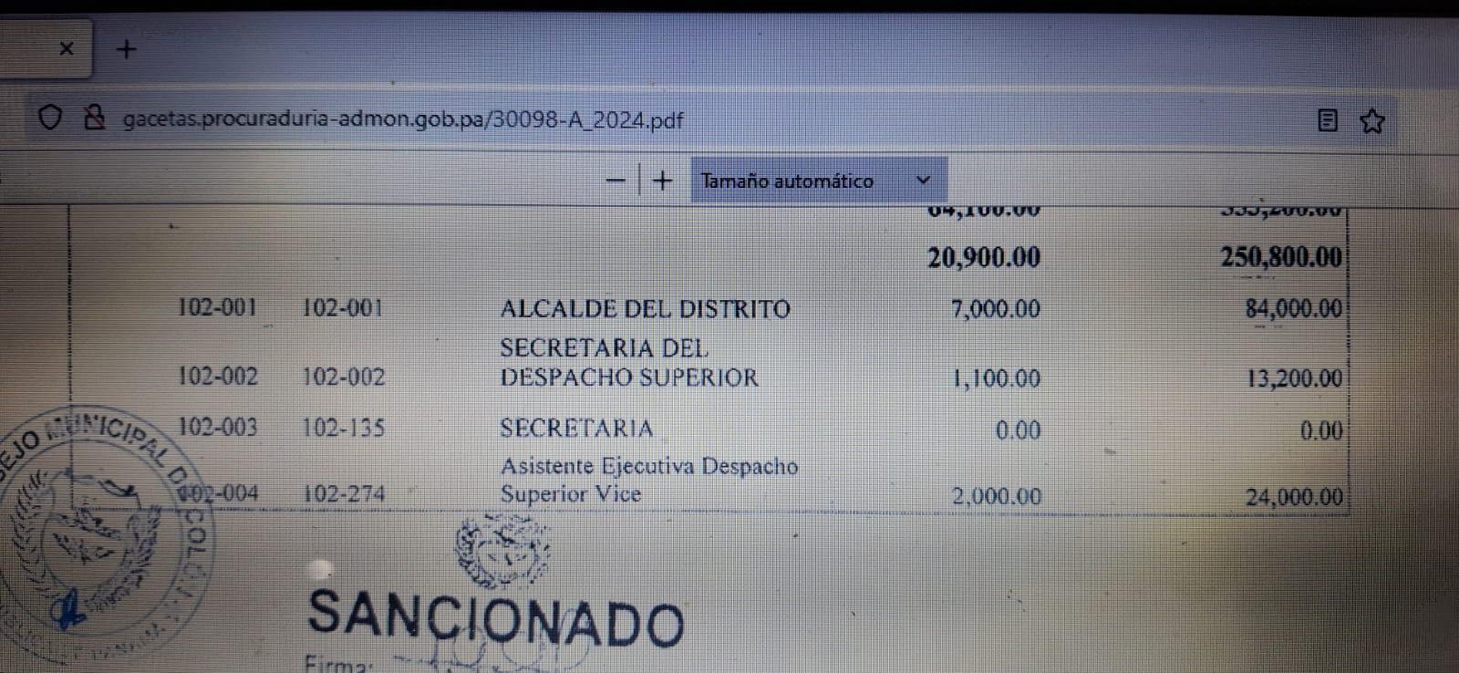 Efectivamente el alcalde anterior cobraba 3,500 de salarios, 3,500, de gastos de representación y otros 3,500 de gastos de movilización. Lo que no explica usted señor alcalde es que él aumento fue al salario Base de 3,500 a 7 mil y que como lo dice usted mismo , es usted uno de los cinco funcionarios que devengan gastos y continúa cobrando los 3,500 de representación y los otros 3,500 de movilización, dando un tota de 14 mil balboas al mes, si esto no es exacto sería bueno que explicara a la comunidad colonenses en medio de este gasto de contención ese aumento que se atribuyó y el de sus gerentes.