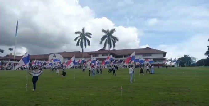 Los participantes levantaron las banderas panameñas y las plantaron frente al edificio de la fundación, como símbolo de soberanía y de su amor por Panamá.