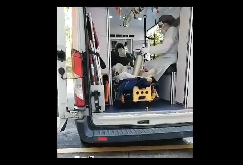 Paradójicamente, a unos cuantos metros donde se estacionó la ambulancia se encuentra el hospital de campaña, que se instaló para aumentar la capacidad y atención en el San Miguel Arcángel.