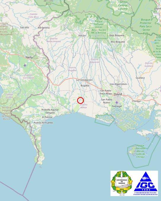 El Instituto de Geociencias de la Universidad de Panamá, a través de su informe, indicó que el sismo se localizó en la región fronteriza de Panamá-Costa Rica, a 20 km al este de Progreso, a las 9:49 a.m. de este jueves.