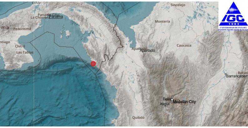 Según detalló la entidad, el movimiento telúrico tuvo su epicentro a 16 kilómetros de distancia de Jaqué, en la provincia de Darién.