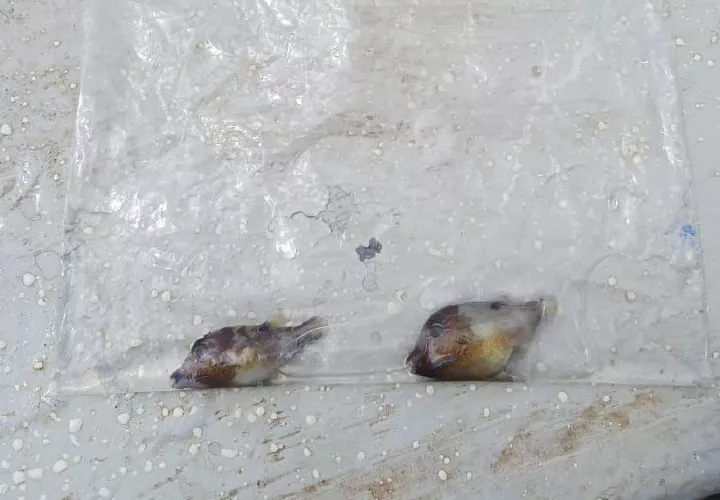 Apenas se encontraron dos peces muertos Tamborín Narizón, sin evidencia de alteraciones físicas externas visibles.