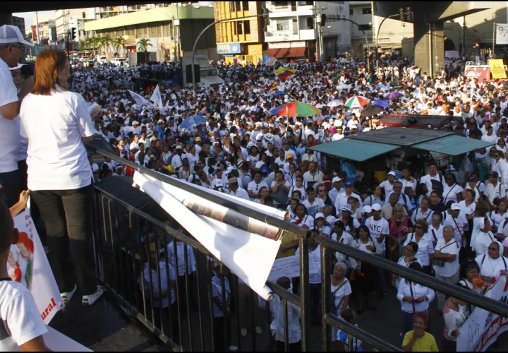La masa de manifestantes estuvo conformada por miembros de iglesias evangélicas y católicas, pero igualmente participaron estudiantes, grupos cívicos y hasta el payaso Pin-Pin.