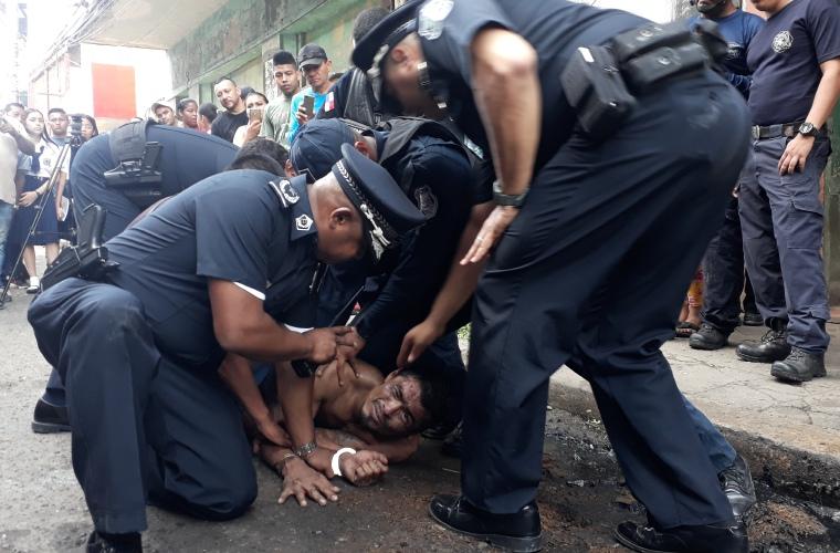 Cuando descendió utilizando un cable como especie de liana y se desparramó en el piso, los policías lo atraparon, lo llevaron al hospital Santo Tomás, donde lo suturaron y lo refirieron al loquero.