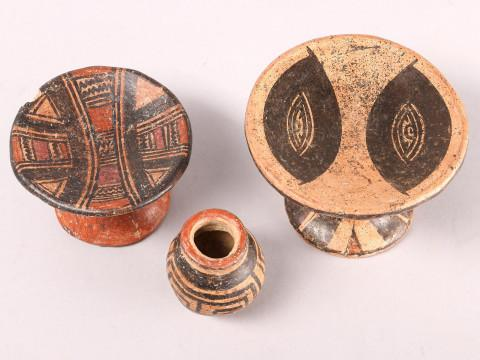 Además hay dos taza de terracota y una olla pequeña decorado con motivos geométricos en pigmentos rojos y negros. Las piezas valen entre 200 y 300 euros.