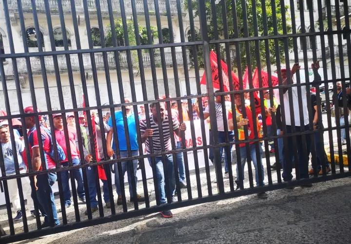 Los obreros de la construcción se mantuvieron por espacio de dos horas en las afueras del hemiciclo legislativo, amenazaban con derribar la cerca peremitral de la Asamblea Nacional.