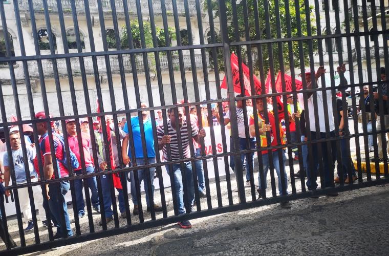 Los obreros de la construcción se mantuvieron por espacio de dos horas en las afueras del hemiciclo legislativo, amenazaban con derribar la cerca peremitral de la Asamblea Nacional.