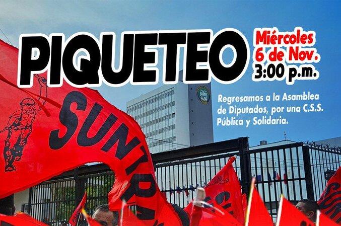 Los obreros afiliados al SUNTRACS se concentrarán a partir de las 3:00 p.m. en los alrededores de la Asamblea Nacional, para manifestar su rechazo a la propuesta que el Ejecutivo presentará, la cual han calificado como un acuerdo entre el Gobierno y el Consejo del Sector Privado (CONEP).
