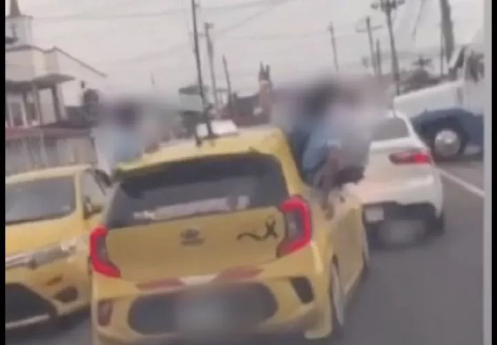El conductor de un taxi fue sancionado ayer en Pedregal, por conducir desordenadamente y llevar a varios estudiantes sentados en las ventanas del vehículo. Además, iba en la vía contraria.