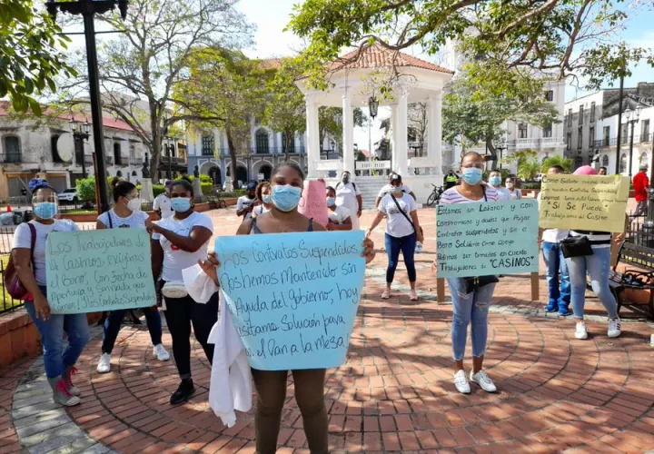 Trabajadores de casinos con contratos suspendidos protestaron hoy, miércoles, cerca de las inmediaciones de la Presidencia de la República, ubicada en corregimiento de San Felipe.