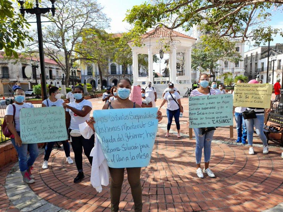 Trabajadores de casinos con contratos suspendidos protestaron hoy, miércoles, cerca de las inmediaciones de la Presidencia de la República, ubicada en corregimiento de San Felipe.