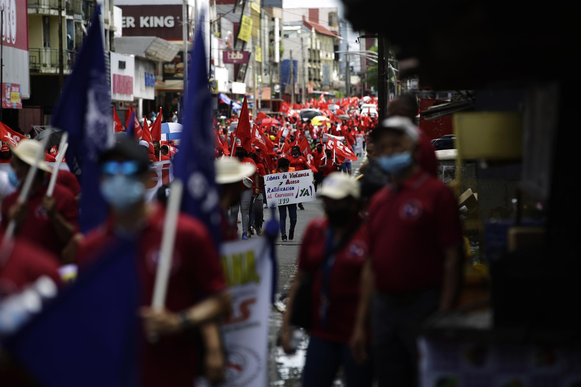 Miles de trabajadores exigieron que se respete el derecho al trabajo y mejores salarios en Panamá este domingo 1 de mayo, durante una marcha liderada por los sindicatos que denunciaron la "falsa democracia" que se vive en este país y exhortaron al pueblo a "organizarse y luchar".