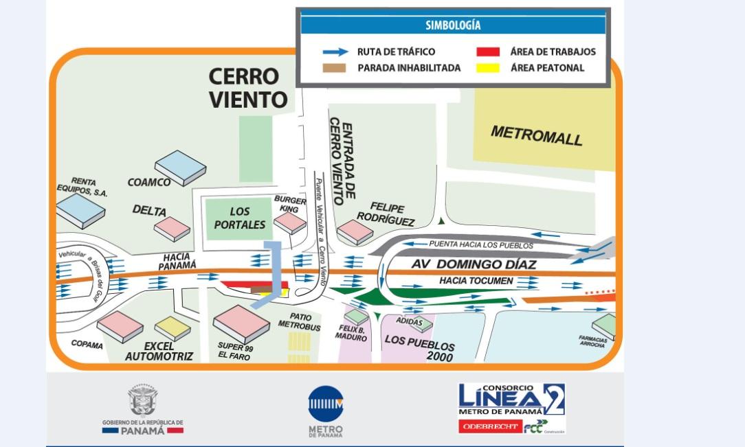 Una serie de cambios se han programado a partir de este lunes 10 de diciembre, debido a los trabajos de ampliación vial en el tramo de la Vía Domingo Díaz que va desde la parada de bus del Centro Comercial El Faro hasta la salida del puente vehicular de Cerro Viento; por lo que se inhabilitará dicha parada, sentido de circulación hacia Tocumen.