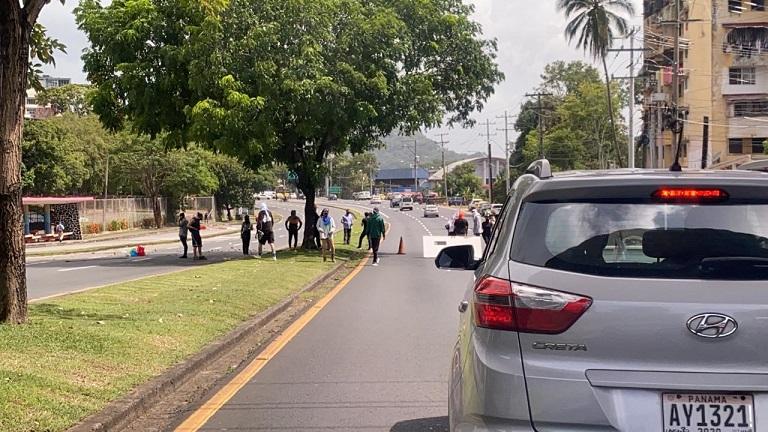 Panamá- Un reducido grupo de estudiantes de la Universidad de Panamá, protestan este jueves con un cierre en la Vía Transístmica, frente a la sede central de esta casa de estudios superiores.