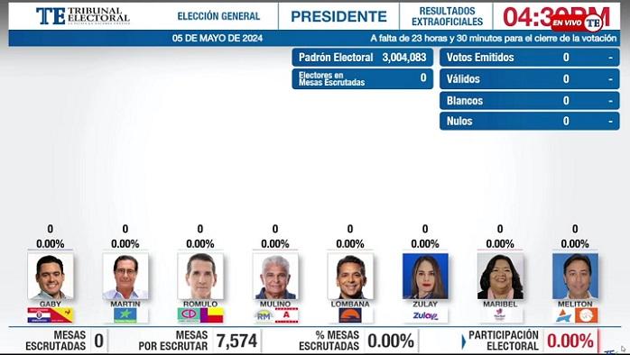 Panamá- Este sábado, 4 de mayo, el Tribunal Electoral puso en 0 el sistema Transmisión de Resultados Extraoficiales (TER), para las elecciones generales de mañana domingo, a través del cual se publicarán los resultados preliminares de la contienda.