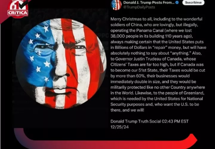 Donald Trump, expresidente de Estados Unidos, encendió las redes sociales con una publicación que no dejó títere con cabeza. Desde su cuenta en X (antes Twitter), envió un mensaje de Navidad que rápidamente causó revuelo: "Feliz Navidad para todos, incluidos los maravillosos soldados de China que operan amorosamente, pero de manera ilegal, el Canal de Panamá."