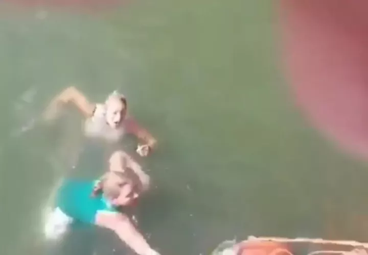 El video que todo mundo vio ayer mostraba a ambas mujeres chapoteando, mientras la tripulación lanzaba una cuerda para traerlas de vuelta al barco.