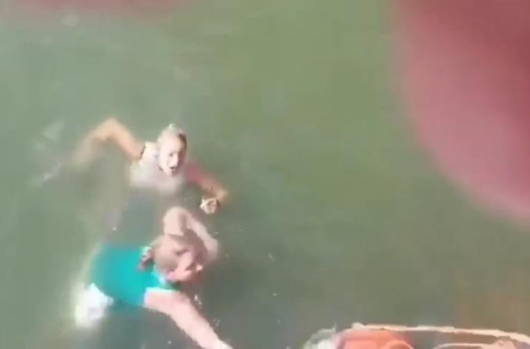 El video que todo mundo vio ayer mostraba a ambas mujeres chapoteando, mientras la tripulación lanzaba una cuerda para traerlas de vuelta al barco.