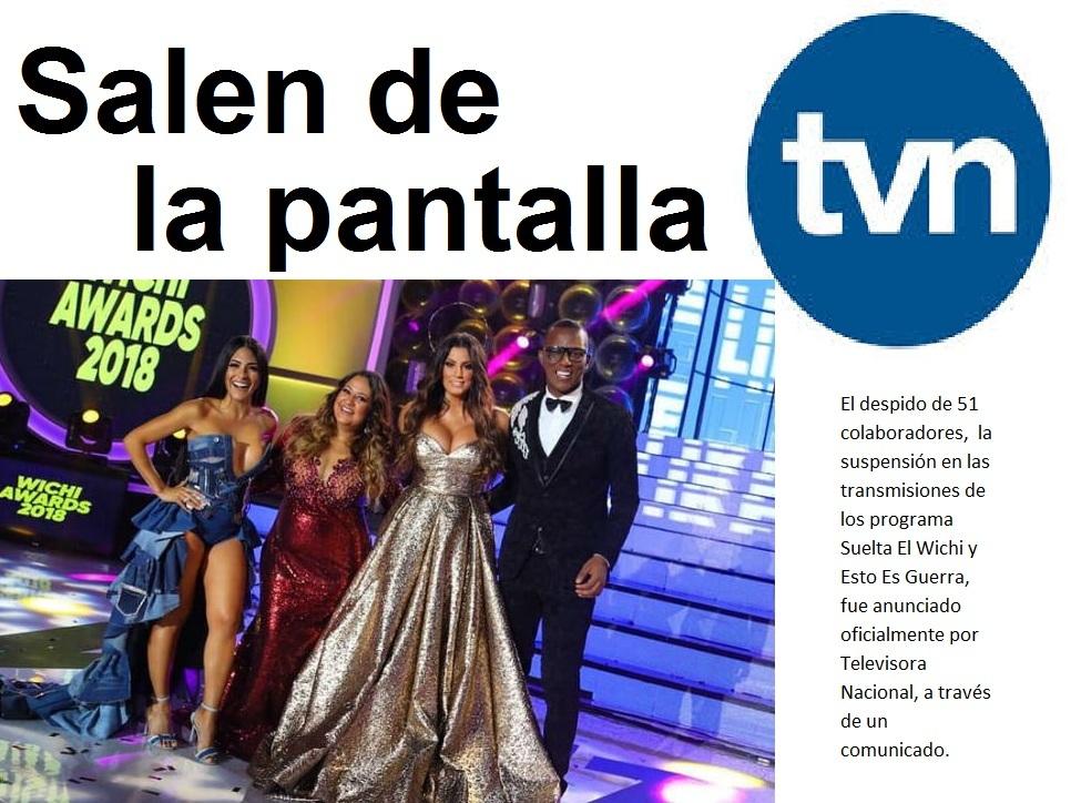 Televisora Nacional anunció el despido de 51 colaboradores y la suspensión de las transmisiones de los programas "Suelta El Wichi" y "Esto es Guerra", ambos de producción nacional.