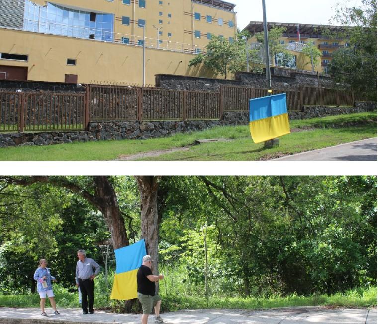 Ucranianos y panameños protestaron ayer frente a la embajada de #Rusia en #Panamá colgando banderas y pintando la calle, donde además colocaron peluches como símbolo de los cientos de muertos y desaparecidos, millones de desplazados y hospitales destruidos, en una acción militar sin precedentes donde muchos países ya han alzado su voz y han asegurado que los “Crímenes de Guerra” son evidentes.