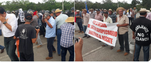 Los manifestantes mantienen pancartas que dicen: "Autoridad para ultrajar al productor y al sector agropecuario" y " Por la unidad del sector agropecuario y ganaderos al rescate".